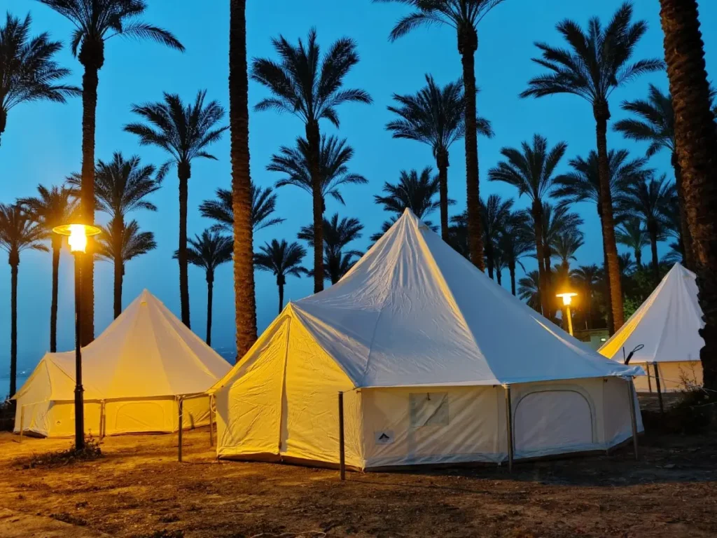 מתחם אוהלי גלמפינג ממוזגים ומוצללים. ארה ביצעה עבור רשת מלונות 'אוליב' את תכנית פיתוח האתר, תכנון העמדה, ייצור האוהלים וההצללות, התקנה ושירות שנתי.